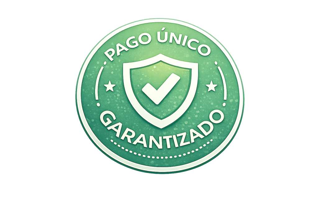 Sin mensualidades ni cobros recurrentes. Pagas una sola vez.